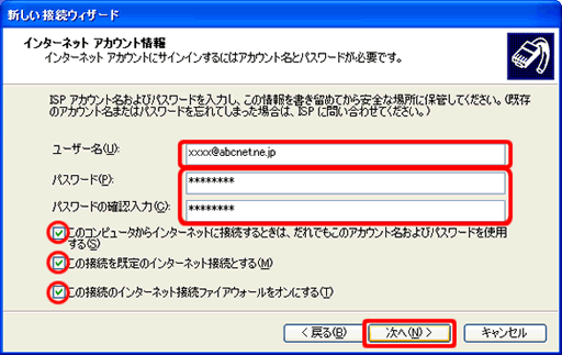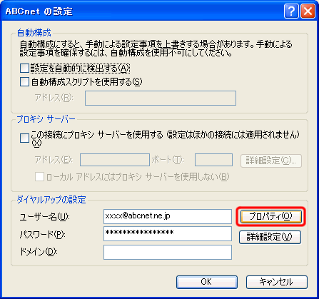 - 【パスワード】はインターネットサービスプロバイダに登録されているパスワードを入力してください。