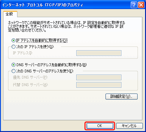 インターネットプロトコル(TCP/IP)の設定は、インターネットサービスプロバイダによって異なります。