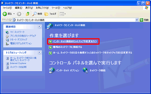 【インターネット接続のセットアップや変更を行う】をクリックしてください。 -