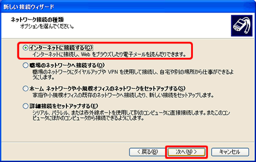 【インターネットに接続する】を選択し、【次へ】をクリックしてください。