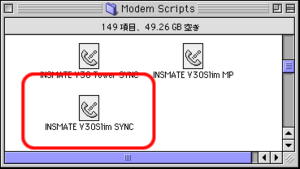 - 【システムフォルダ】 - 【機能拡張】 - 【ModemScripts】を開いて、同期64Kbps対応のCCLファイルがインストールされていることをご確認ください。