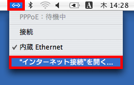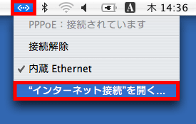 メニューバー上の <・・・> マークをクリックし、【“インターネット接続”を開く】を選択してください。