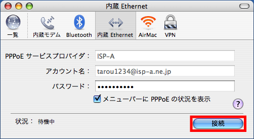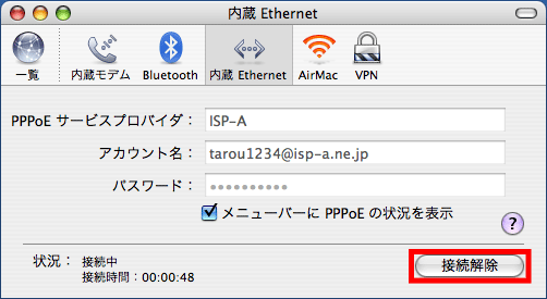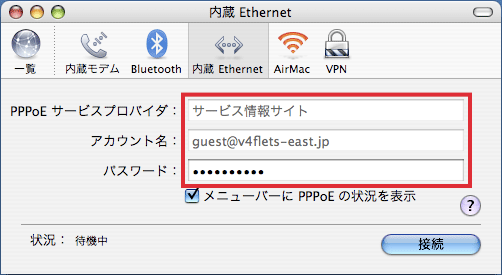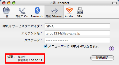 - Mac OS 10.4の標準PPPoE接続ではマルチセッションはできません。