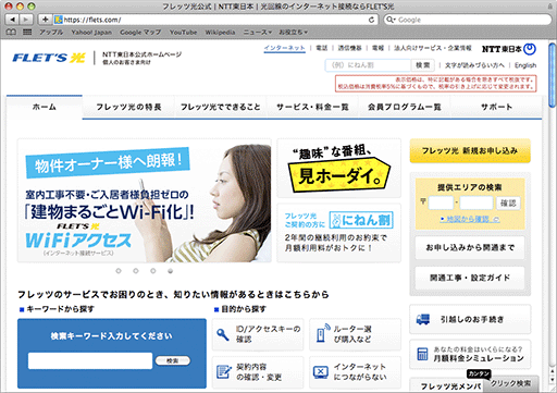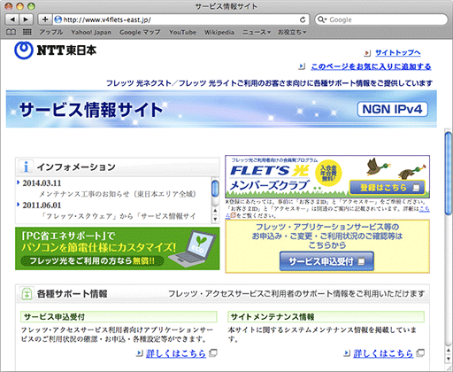 インターネット接続の場合 ホームページのURLを入力してください。(例:http://flets.com/) NGN接続の場合 「http://www.v4flets-east.jp/」と入力してください。