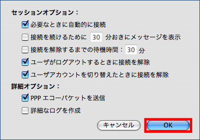 - Mac OS 10.4の標準PPPoE接続ではマルチセッションはできません。