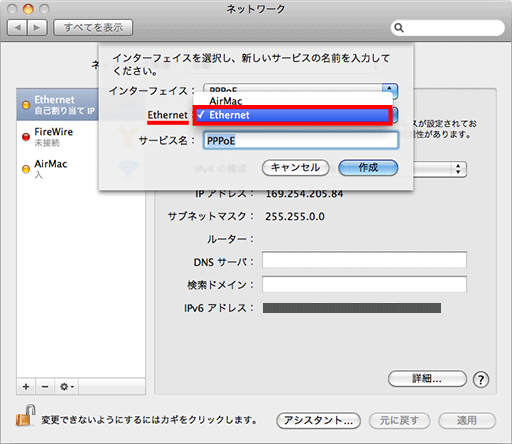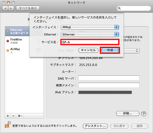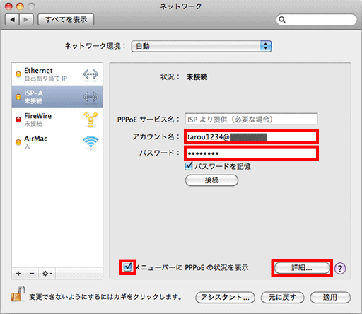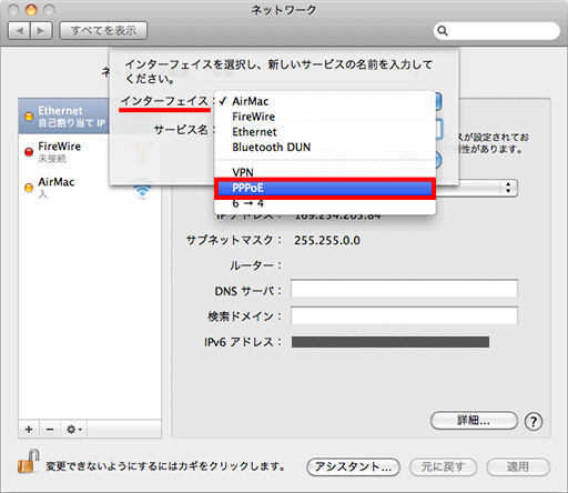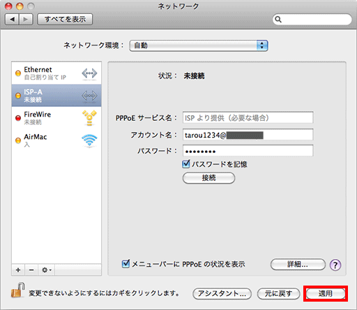 PPPoEの設定: Mac OS 10.6 インターネットへの接続先設定方法