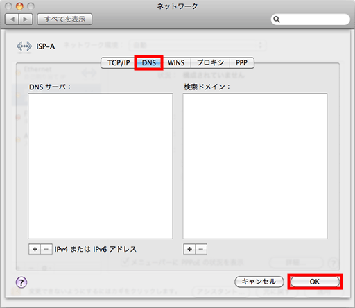 DNSサーバーアドレスを指定するインターネットサービスプロバイダをご利用の場合は、DNSサーバーのIPアドレスの追加を行ってください。