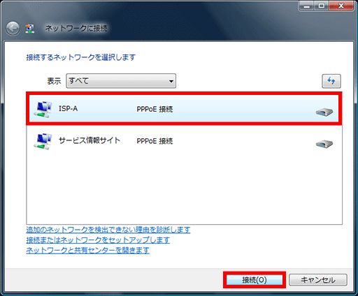 ここでは例として、インターネットへの接続先設定【ISP-A】を選択しています。