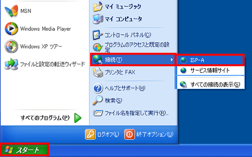 スタートメニューの【接続】から作成した接続先を選択してください。