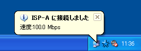 タスクトレイに下のようなメッセージが表示されましたら、接続完了です。