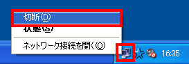 タスクトレイ内のネットワークアイコンを右クリックし、リストから【切断】を選択してください。