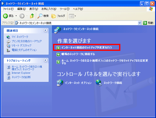 【インターネット接続のセットアップや変更を行う】 をクリックしてください。