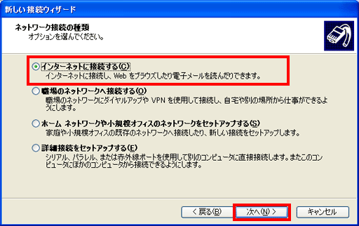【インターネットに接続する】を選択し、【次へ】をクリックしてください。