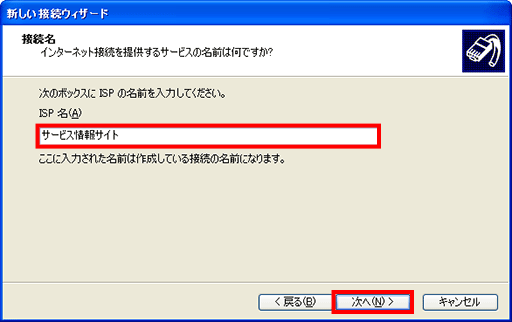 「ISP名」にお客さま任意の名前を入力し、【次へ】をクリックしてください。