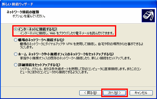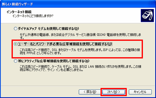 PPPoEの設定: Windows XP Service Pack 2,3 インターネットへの接続先設定方法