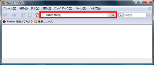 アドレス部に「about:config」と入力してください。