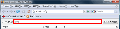FirefoxブラウザでのIPv6設定方法