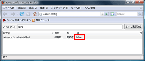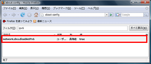 以上でFirefoxでのIPv6設定は終了です。