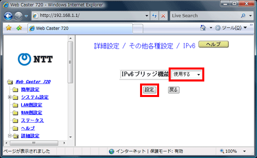 IPv6通信させるためのルーター設定方法:Web Caster 720