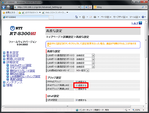 IPv6通信させるためのルーター設定方法:RT-S300HI