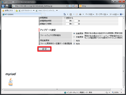 画面を下にスクロールし、最下部の【設定】ボタンをクリックしてください。