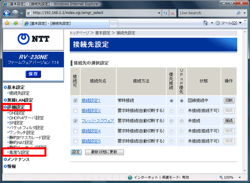 メニューの【詳細設定】をクリックし、【高度な設定】をクリックしてください。
