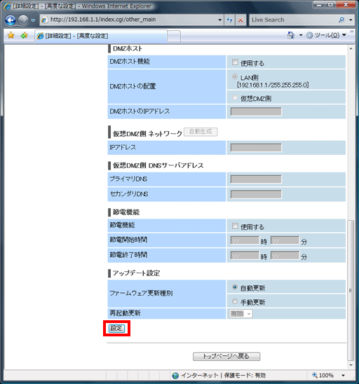 画面を下にスクロールし、最下部の【設定】ボタンをクリックしてください。