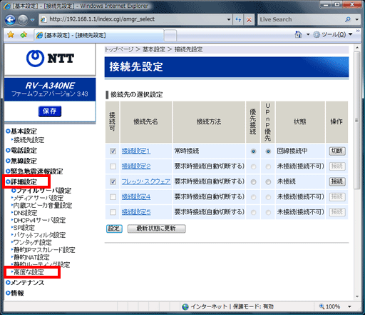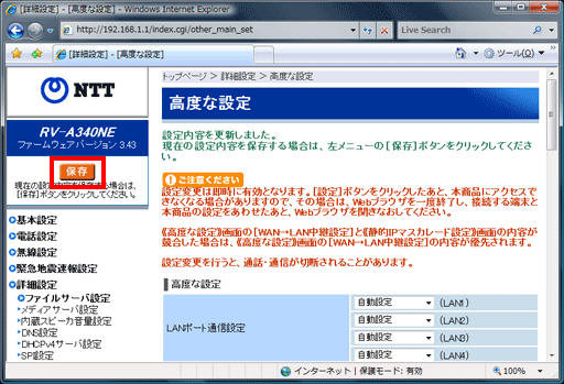 メニューの【詳細設定】をクリックし、【高度な設定】をクリックしてください。