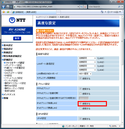 IPv6通信させるためのルーター設定方法:RV-A340NE
