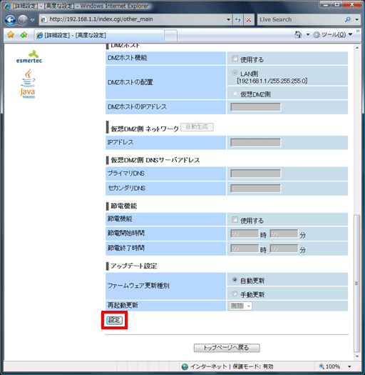 画面を下にスクロールし、最下部の【設定】ボタンをクリックしてください。