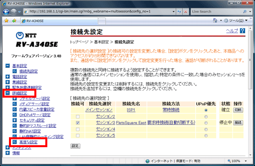メニューの【詳細設定】をクリックし、【高度な設定】をクリックしてください。