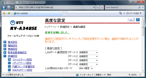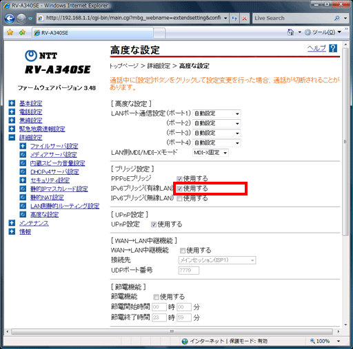 IPv6通信させるためのルーター設定方法:RV-A340SE