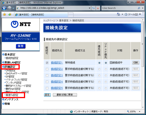 メニューの【詳細設定】をクリックし、【高度な設定】をクリックしてください。