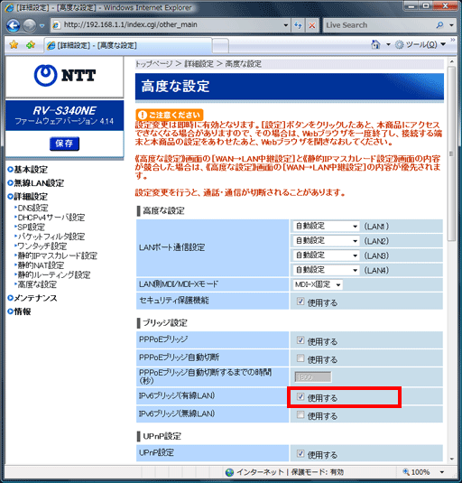 IPv6通信させるためのルーター設定方法:RV-S340NE