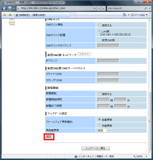 画面を下にスクロールし、最下部の【設定】ボタンをクリックしてください。