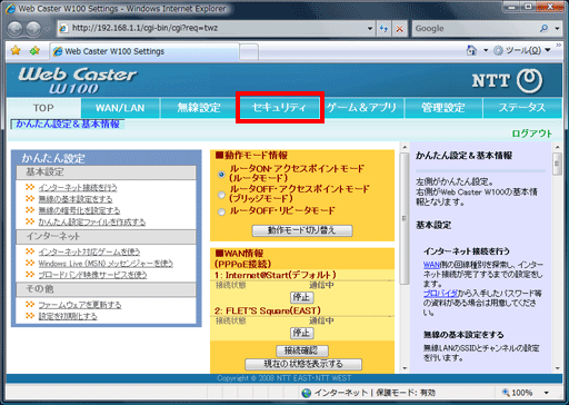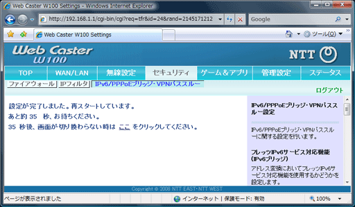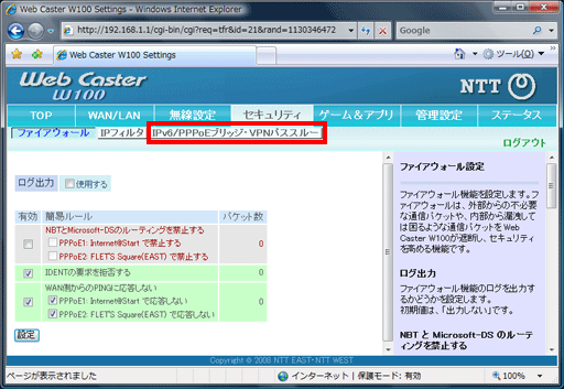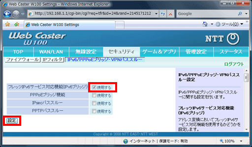 IPv6通信させるためのルーター設定方法:Web Caster W100